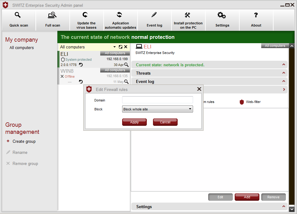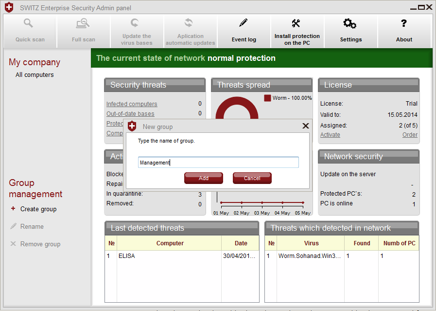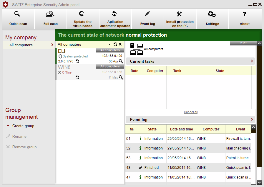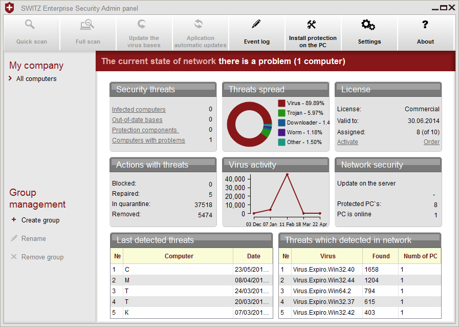 - Minimum Requirements for Internet connection speed: virus updates are loaded by one (the main) computer and spread among others